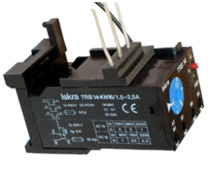 Overcurrent thermal relays have been for a long time applied as the best protection of motors from current overloading. With the aid of an auxiliary contact they switch off the contactor and the motor itself. In this way they protect the motor against damage caused by overloading, rotor braking or phase failure, and assure reliable motor operation. There are four overload relay version available: TRB 14 for separate mounting with screws or quick mounting to the standard rail (35 mm) TRB14/KNL 16, TRB14/KNL 30 for direct mounting to KNL 22 and KNL 30 motor contactors, and TRB 14/KNL07 for direct mounting to contactors KNL 07. Minimal distance between overcurrent relays 15 mm.